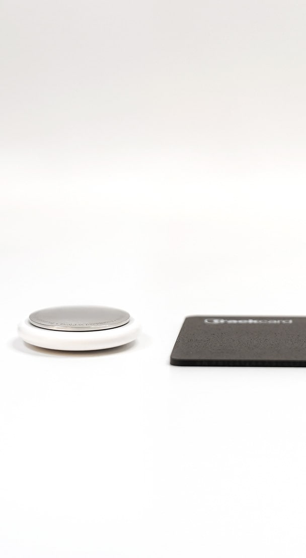 Die Trackcard ist mit nur 1,7 mm der dünnste wiederaufladbare Tracker im Kreditkartenformat und damit deutlich flacher als der 8 mm dicke AirTag.